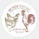 Échangez ces étiquettes ennuyeux en carton d'oeufs pour quelque chose d'aussi frais que vos oeufs de ferme ! Ce étiquette représente deux poules et un coq avec une bordure indiquant le nombre d'oeufs de poules d'élevage, votre nom de ferme et vos coordonnées.