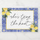 Cette étiquette de champagne de douche de mariée au citron méditerranéen présente un clip de carrelage bleu foncé et jaune peint à la main unique avec des citrons à l'aquarelle ! Avec un accent de typographie moderne, ce thème inspiré de la côte amalfitaine française est parfait pour toutes les saisons !
