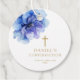 Cette étiquette de confirmation florale à l'aquarelle bleu poussiéreux moderne et élégante peut être personnalisée avec vos informations en typographie dorée chic. Conçue par Thisisnotme©