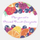 Une salade de fruits et baies colorées avec des tranches d'orange, des fraises, des bleuets, des currants, des tranches de citron et de citron et des framboises sur les cartes de visite, des autocollants-cadeaux alimentaires "de ma cuisine" ou des étiquettes de conserves pour la cuisine et la cuisson.