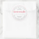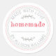 L'étiquette Rustic Homemade Green Kitchen présente un fond blanc croquant avec des détails de cercles cousus et des accents botaniques verts doux, magnifiquement associés à un script « fait maison » rouge gras. Parfait pour étiqueter les produits de boulangerie, les confitures, les conserves, les pots de conserve, les sachets de friandises et les cadeaux faits maison, cet autocollant rond ajoute une touche chaleureuse et personnelle à tout ce qui est fait avec amour. Les éléments verts frais apportent une sensation joyeuse et naturelle - idéale pour les boulangers amateurs, les fabricants de produits alimentaires de cottage et les cadeaux saisonniers.
