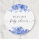 Étiquette de faveur de Baby Shower Fleurie en Porcelaine Bleue. Cette invitation de Baby Shower élégante et stylée présente de superbes fleurs de porcelaine bleue peintes à la main à l'aquarelle. Trouvez des articles assortis dans la Collection Fleurie en Porcelaine Bleue.