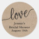 Cette simple étiquette de faveur de douche nuptiale rustique autocollante comporte le mot amour en écriture manuscrite. Ajoutez vos informations sur le formulaire de modèle. Modifiez la police et la mise en page à l'aide de la fonction Personnaliser davantage.