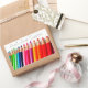 Ce étiquette présente une image de crayons couleur arc-en-ciel, avec un texte personnalisable.
