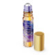 Un étiquette pour bouteilles à rouleaux de parfum avec un arrière - plan imitation violet et marbre doré.