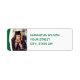 L'étiquette d'adresse de retour de l'invitation de remise de diplômes simple et moderne comprend la photo principale préférée de votre diplômé avec un cadre double courbe sur un côté. Parfait pour envoyer des annonces de remise de diplômes et des invitations de fête. Design disponible en rouge, orange, bleu, vert, violet, marron et noir. Produits correspondants et autres couleurs disponibles.
