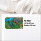 Design original de perroquets Macaw colorés dans une jungle d'Amérique centrale par la designer Carolyn McFann sur des étiquettes personnalisables pour les amateurs de perroquets.