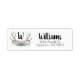 Retourner les étiquettes d'adresse avec monogramme entre les bois remplis de fleurs.