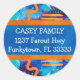 Conçu pour correspondre à la carte d'invitation Funky, Far-Out, Fun Retirement Party, ce label d'adresse de retour présente des formes géométriques bleues et oranges, fixées sur un ciel étoilé bleu et violet, dans un design coloré qui n'est pas tout à fait sur le dessus. Le nom et le texte de l'adresse de retour peuvent être customisés facilement.