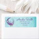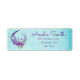 Ce design présente un croissant de lune violet avec des fleurs, sur un arrière - plan d'aqua. Tous les textes et images peuvent être customisés.