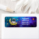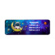 Allocution de retour de l'astronaute sur l'espace extra-atmosphérique - Un astronaute, niché dans un croissant de lune, tient la main en paix. Il est entouré d'étoiles, saturn, un vaisseau spatial. Plusieurs lignes sont fournies pour votre nom et adresse. Idéal pour envoyer les invitations d'anniversaire assorties, la carte de voeux et les cartes de remerciements.