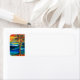 Étiquette d'adresse de retour dynamique avec palmier, plage et océan.