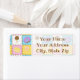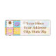 Satisfaites votre dent sucrée avec ce motif coloré qui propose de savoureuses friandises comme un cône de crème glacée au chocolat, un beigne de chocolat mauve, un macaron jaune citron, et une sucrerie tourbée rose et blanche séparée par des chips de chocolat et entourée de saupoudrées d'arc-en-ciel sur quatre carrés aux couleurs vives. Customisez les détails de l'adresse sur ce étiquette de retour pour en faire votre propre. Vous pouvez également choisir parmi l'adresse standard et les tailles d'expédition pour le étiquette.