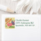 Collage de légumes - pommes de terre, tomates, aubergines, pois, carottes, radis, concombre - sur une étiquette d'adresse de retour.