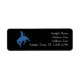Cette étiquette d'adresse de retour présente une silhouette bleue d'un cow-boy sur un bronco cinglant sur un arrière - plan noir. Modifiez ou supprimez l'exemple de texte.
