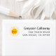 Étiquette d'adresse de retour avec une aquarelle illustrant un soleil souriant jaune. Vous pouvez l'utiliser pour un anniversaire ou des cartes à thème baby shower.