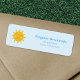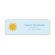 Un soleil mignon jaune à Kawaii Style Retourner Adresse Label sur un arrière - plan bleu clair : ajoutez une touche d'humour à vos lettres et paquets!