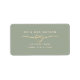 Calligraphie simple, minimaliste, moderne, mariage contemporain tendance sauge vert retour adresse label avec coeur de corde or.