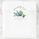 L'autocollant présente une image aquarelle de myrtilles avec la citation étendez l'amour en typographie gris foncé.