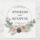 Étiquette de mariage élégant pour le vin. Dans un cadre de Noël doré, couronne d'or avec des cônes de pin et des roses sur un arrière - plan blanc.