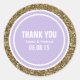 Stickers ronds de Étiquette de Merci personnalisables Parties scintillant Or avec des modèles de Lavande et Cercle blanc. Beaucoup d'autres couleurs disponibles. Peut être utilisé pour une variété d'événements allant des Mariages aux anniversaires et autres événements de votre choix.