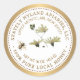 Étiquette de miel métallique doré ronde avec texte doré. Le dessin central montre une abeille mellifère pollinisant une fleur sauvage de pissenlit jaune. Écrivez votre nom, type de miel, emplacement et poids net.. Conversions courantes de poids net de miel : 8oz (227g), 12oz (340g), 16oz (454g), 32oz (907g), 5lb (2,27kg).