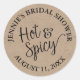 Cette étiquette simple et rustique pour enterrement de vie de jeune fille en forme de pot de salsa comporte les mots " Chaud et Épicé " en écriture manuscrite. Ajoutez vos informations sur le formulaire de modèle. Modifiez la police et la mise en page à l'aide de la fonction Personnaliser davantage.