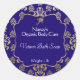Un étiquette de produit avec un motif damassé bleu marine dans l'arrière - plan. A de l'espace pour votre logo.