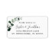 Étiquette d'expédition de réponse de RSVP de mariage au eucalyptus... Feuilles d'eucalyptus de teinte émeraude sur fond blanc pour la numérisation par le bureau de poste, avec les noms des mariés en écriture calligraphique romantique sur une étiquette d'expédition pour vos enveloppes de réponse. Partie d'une suite de mariage avec des accessoires coordonnés dans le même thème d'eucalyptus.