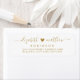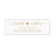 Étiquettes de retour d'adresse de couple élégantes et modernes en or et blanc avec lettrage manuscrit. Caractérisées par un joli modèle de nom de famille et de prénom de couple écrit à la main avec une police à queue en noir, un petit cœur entre les noms sur fond blanc. Facile à personnaliser avec vos noms et informations de retour d'adresse.