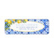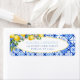 Étiquette d'adresse de retour de carreaux bleus italiens floraux à l'aquarelle de citrons.