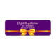 Élégante, classique, glamour et féminine étiquette de retour d'adresse. Un ruban et un nœud dorés. Un fond violet féminin élégant. Modèles pour le nom et l'adresse. Lettres de couleur or rose.