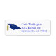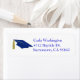 Étiquette d'adresse de retour sur le thème de la graduation faite en blanc, avec texte bleu personnalisé. Les graphiques du casquette d'un diplômé bleu et or décorent le côté gauche du étiquette. Personnalisez le texte en fonction de vos besoins. Une gamme complète de produits de graduation assortis est disponible.