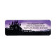 Maison hantée éffrayante sur une étiquette d'adresse de retour d'halloween arrière - plan violet