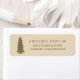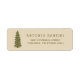 Étiquette d'adresse de retour de l'arbre de Noël avec lumières et ampoules sur une couleur solide arrière - plan bronzé