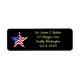 Cette adresse patriotique de retour présente le drapeau américain en forme d'étoile contre un arrière - plan noir. Le texte est modifiable, alors allez-y et changez la couleur, le style et la taille de la police et faites-le vous-même. Profitez d'utiliser ces étiquettes d'adresse de retour d'étoile du drapeau patriotique!