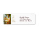 Cette étiquette d'adresse de retour de vacances présente une image artistique vintage de la crèche chrétienne traditionnelle, avec la Sainte Famille et les animaux dans l'étable. Le message secondaire dit en or : "Pour nous, un enfant naît." Facile à customiser le texte.