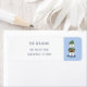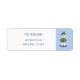 Quelques étiquettes d'adresse de retour mignonnes blanches et bleues claires de vacances portant un ours polaire portant des cadeaux. Personnalisez-les avec le nom de votre famille et votre adresse. © ArianeC Illustrations-Tous droits réservés
