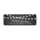 Étiquette d'adresse de retour amusante et fantaisiste avec feux de fée blancs sur l'arrière - plan de tableau noir. Il s'agit d'une partie d'une suite mariage. Des éléments correspondants sont disponibles.