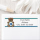 Cet adorable étiquette est orné d'un ours en peluche marron, avec une bordure à trait bleu et vert. L'ours tient un cercle avec un monogramme. Cela peut être customisé.