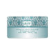 Modèle damassé turquoise avec initiales à l'intérieur du cadre décoratif.
