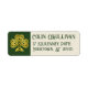 L'oeuvre d'un shamrock à noeud celtique est imprimée en or qui a un aspect faux métallique et est placée contre un arrière - plan vert foncé. Customisez avec votre propre nom et votre adresse de retour en utilisant les modèles de texte faciles fournis.