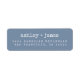 Un mariage chic, moderne et simple vous renvoie l'étiquette d'adresse avec vos noms dans la typographie moderne blanche sur un arrière - plan bleu vintage. Ajoutez simplement vos noms et votre adresse. Conçu exclusivement pour vous par Happy Dolphin Studio.