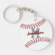 Ce porte - clé acrylique sur le thème du baseball présente un graphique de baseball simple et minimaliste (montrant uniquement les points de baseball en rouge) sur un arrière - plan blanc personnalisable - personnaliser avec nom de joueur et monogramme - par katz_d_zynes