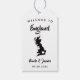 Ces étiquettes de sac de bienvenue de mariage amusantes sont illustrées avec la carte de silhouette de l'emplacement de votre mariage. Vous pouvez déplacer le cœur en cliquant sur "personnaliser davantage". Vos invités de province adoreront les recevoir lorsqu'ils s'enregistreront pour le week-end de célébration.