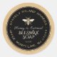 Cette étiquette de produit de rucher est entièrement personnalisable. Personnalisez avec le nom de votre rucher, votre localisation, la description du produit et la taille du contenant. Cercle noir sur fond kraft et texte marron. L'illustration de l'abeille à miel héraldique est un design médiéval vintage.