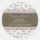 Elégant, mais rustique, look de pays, faux burlap et dentelle produits autocollants étiquette pour marque - Vintage, dentelle florale bordent le haut et le bas. Un brun brun rustique et abîmé qui a l'air arrière - plan. A le nom de la société dans le script correspondant, taupe. En dessous se trouve le nom du produit et l'adresse du site Web d'entreprise personnalisée. Idéal pour faire la promotion de votre entreprise familiale, des thèmes de pays et des styles de produits rustiques. Cliquez sur l'option Personnaliser pour modifier les couleurs, la taille et les styles de police du texte.