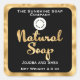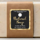 étiquette de luxe pour savon naturel avec arrière - plan noir et bordure en or. Ce étiquette mesure 1,5 pouces par 1,5 pouces et contient de l'espace pour votre nom d'entreprise, logo, parfum ou type de produit, et le poids du produit.