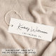 Vêtements de couleur crème légère élégants et stylés, accessoires, bijoux, boutique, etc., étiquette avec une ambiance minimaliste qui présente votre nom ou votre marque dans un script de signature chic et un texte supplémentaire ci-dessous si vous le souhaitez dans une typographie moderne simple. Au dos, ajoutez du texte supplémentaire et entrez une adresse URL pour créer un code QR scannable connecté à votre site Web, portfolio, profil de médias sociaux ou toute autre plateforme qui met en valeur votre travail et vos produits, ce qui permet aux clients d'explorer facilement votre marque. Veuillez noter que Zazzle ne perce pas le trou.