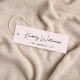 Vêtements rose clair élégants et stylés, accessoires, bijoux, boutique, etc., étiquette avec une ambiance minimaliste qui présente votre nom ou votre marque dans un script signature chic et un texte supplémentaire ci-dessous si vous le souhaitez dans une typographie moderne simple. Au dos, ajoutez du texte supplémentaire et entrez une adresse URL pour créer un code QR scannable connecté à votre site Web, portfolio, profil de réseau social ou toute autre plateforme qui met en valeur votre travail et vos produits, ce qui permet aux clients d'explorer facilement votre marque. Veuillez noter que Zazzle ne perce pas le trou.